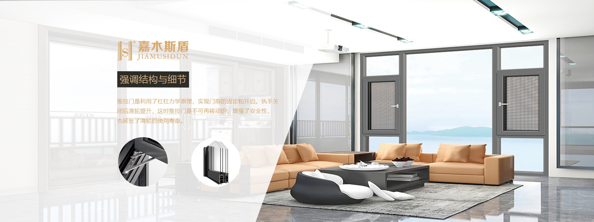 嘉木斯盾門(mén)窗包括陽(yáng)光房、別墅門(mén)窗、平開(kāi)門(mén)、推拉窗、折疊門(mén)、推拉門(mén)、平開(kāi)門(mén)、全鋁室內(nèi)門(mén)等產(chǎn)品品類(lèi)